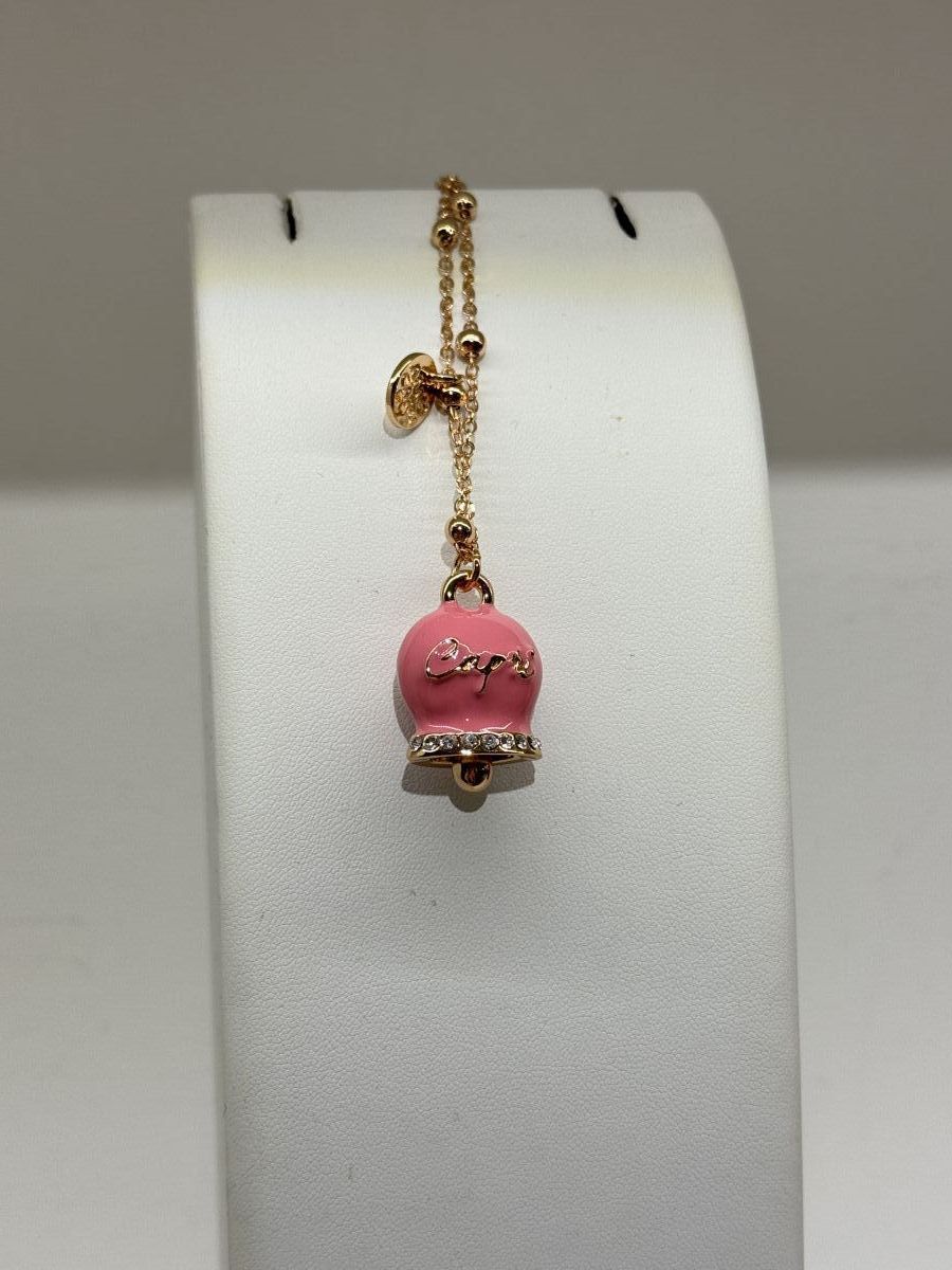 con ciondolo a forma di campanella portafortuna impreziosito da smalto colorato e cristalli;
