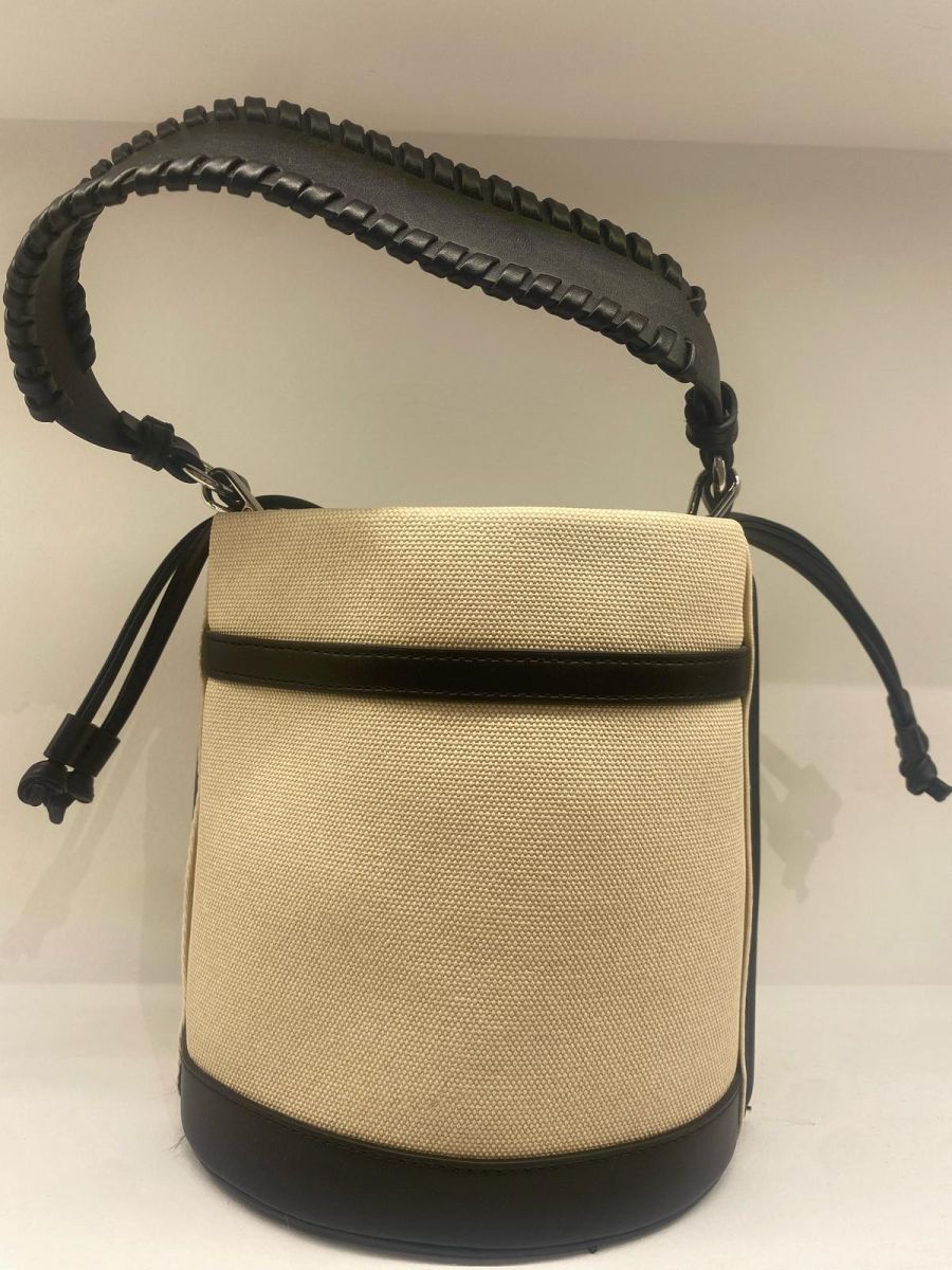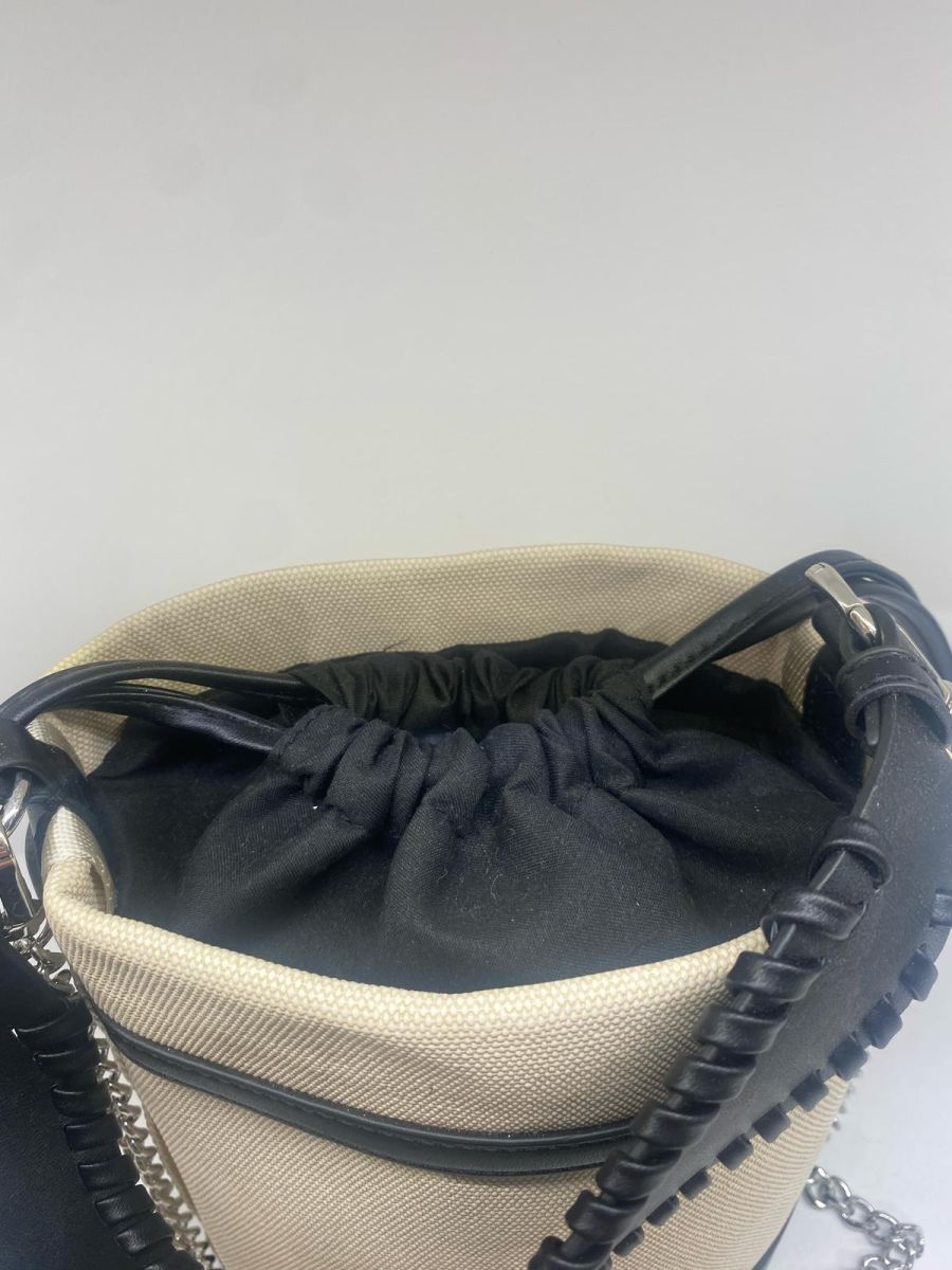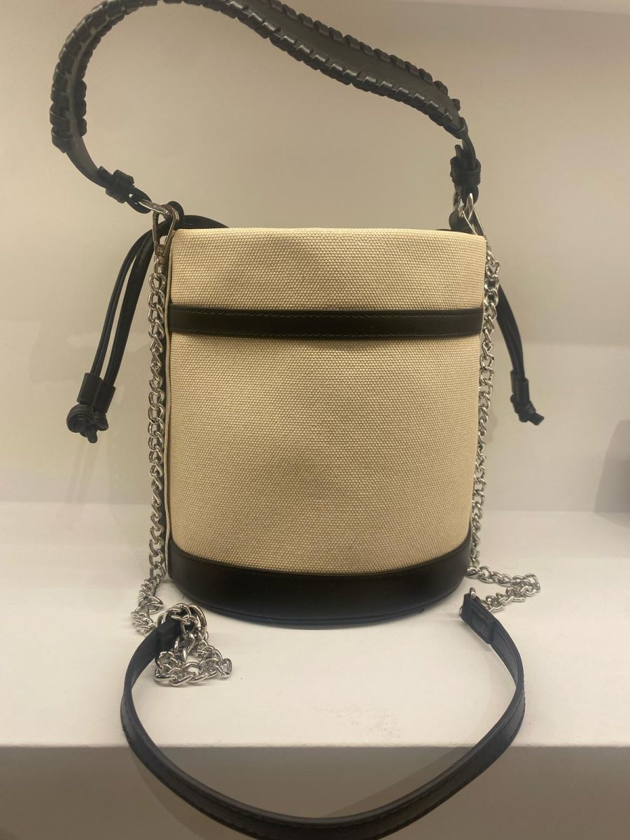 Borsa bauletto in ecopelle e tessuto disponibile in tre varianti di colore, presenta una chiusura a sacchetto con laccio in ecopelle, manico corte e una tracolla lunga metallica per rendere unici i vostri outfit.