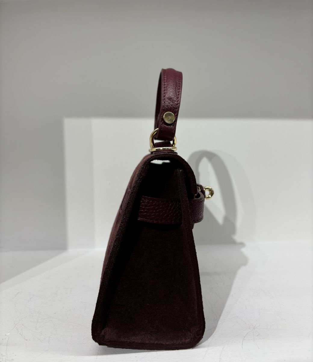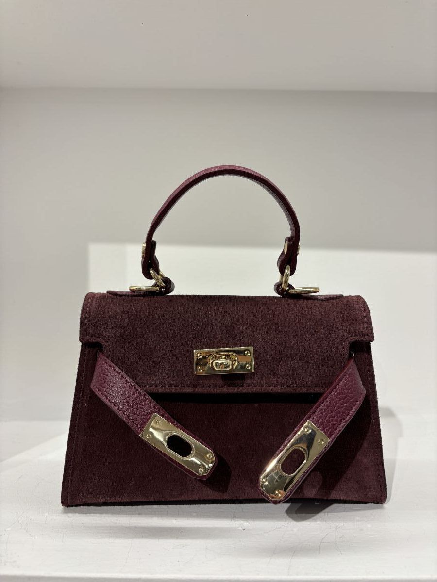 Borsa in pelle ispirata al classico stile Birkin. La borsa è dotata di un manico superiore per essere portata a mano, e di una tracolla regolabile e rimovibile per un look pratico e moderno. 100% made in Italy. E' dotata anche di pratici chiodini che consentono di non toccare le superfici.