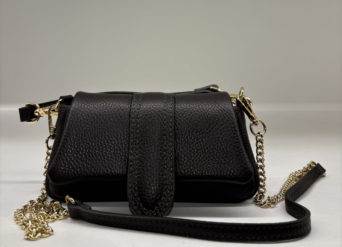 Elegante, morbida e pratica, questa borsa piccola in pelle italiana è l'accessorio perfetto per chi cerca raffinatezza e funzionalità in un unico design. Grazie alla doppia tracolla può essere comodamente portata a spalla o a mano, adattandosi ad ogni occasione.