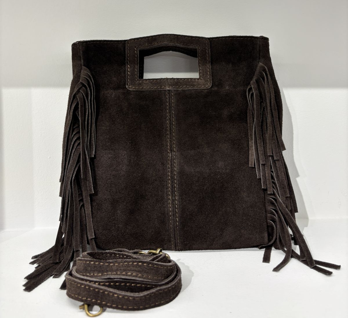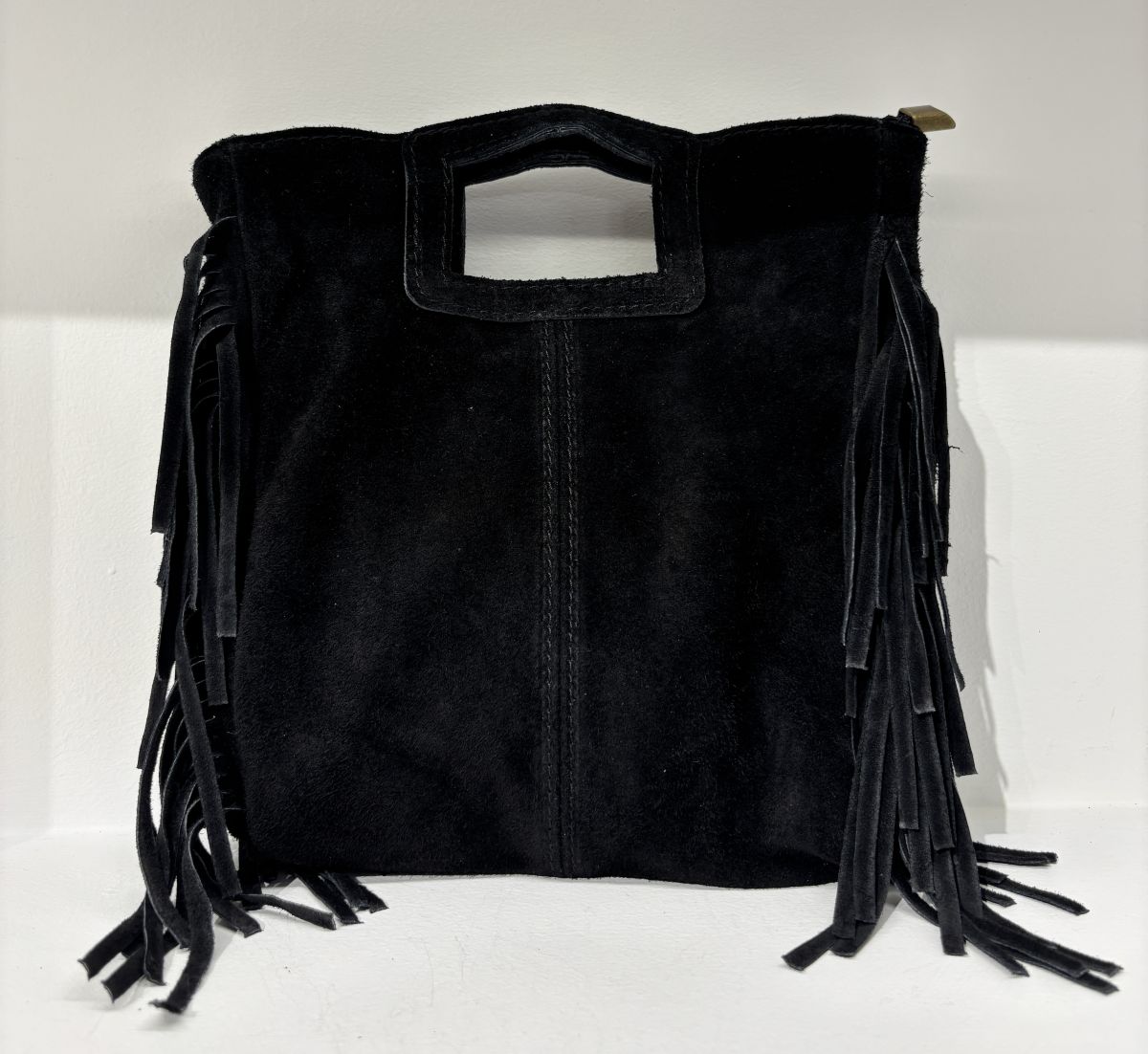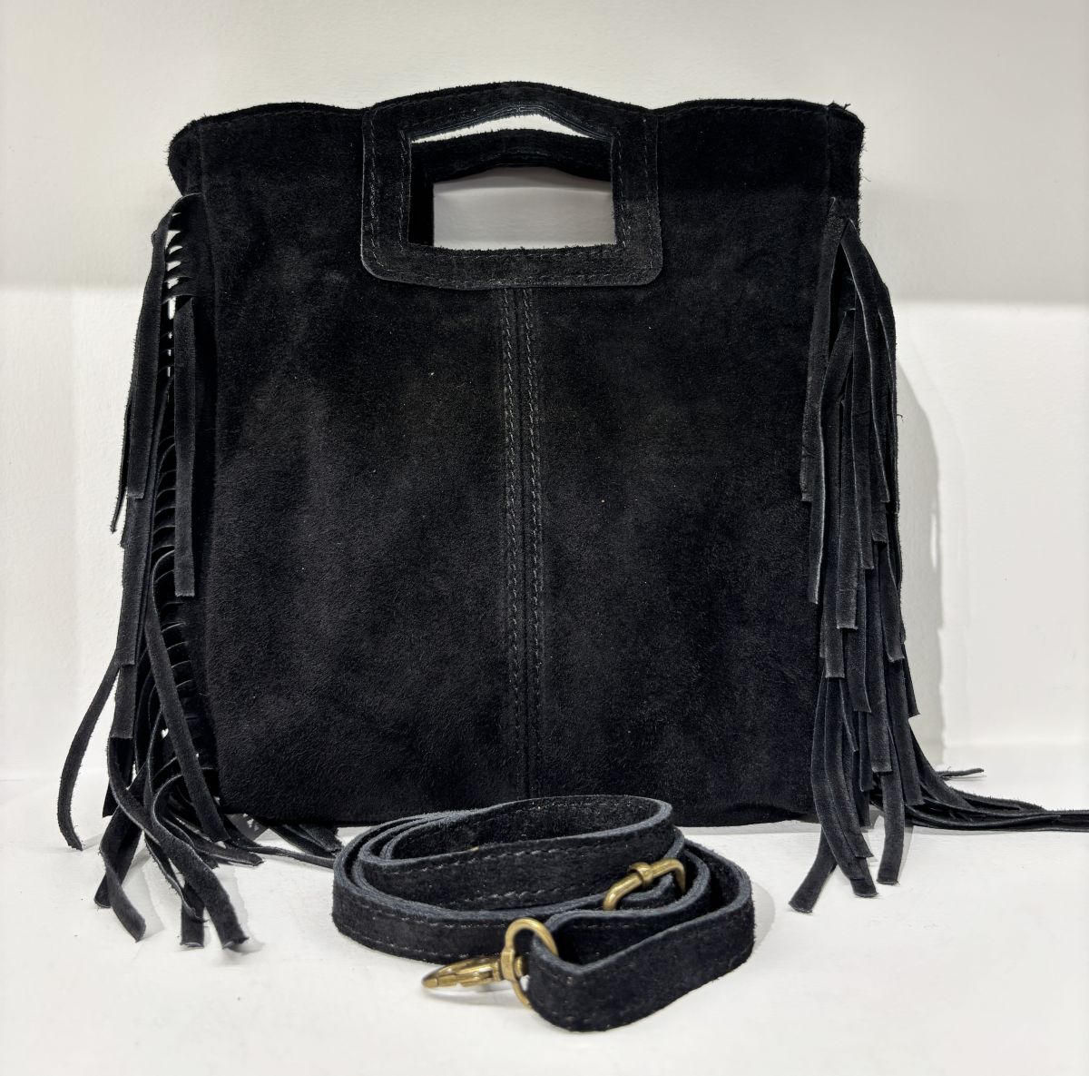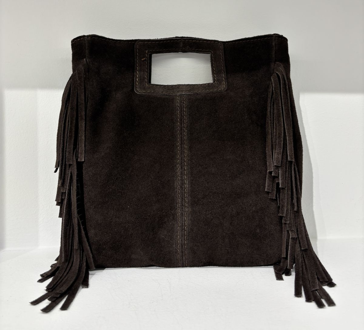 Realizzata in pelle 100% ,made in Italy, questa borsa dalla forma quadrata si distingue per il suo design contemporaneo e i dettagli dallo spirito boho. Le frange laterali donano movimento e personalità, rendendola un accessorio unico e versatile. Comoda da portare a mano, è dotata anche di una tracolla removibile, perfetta per chi desidera maggiore praticità.