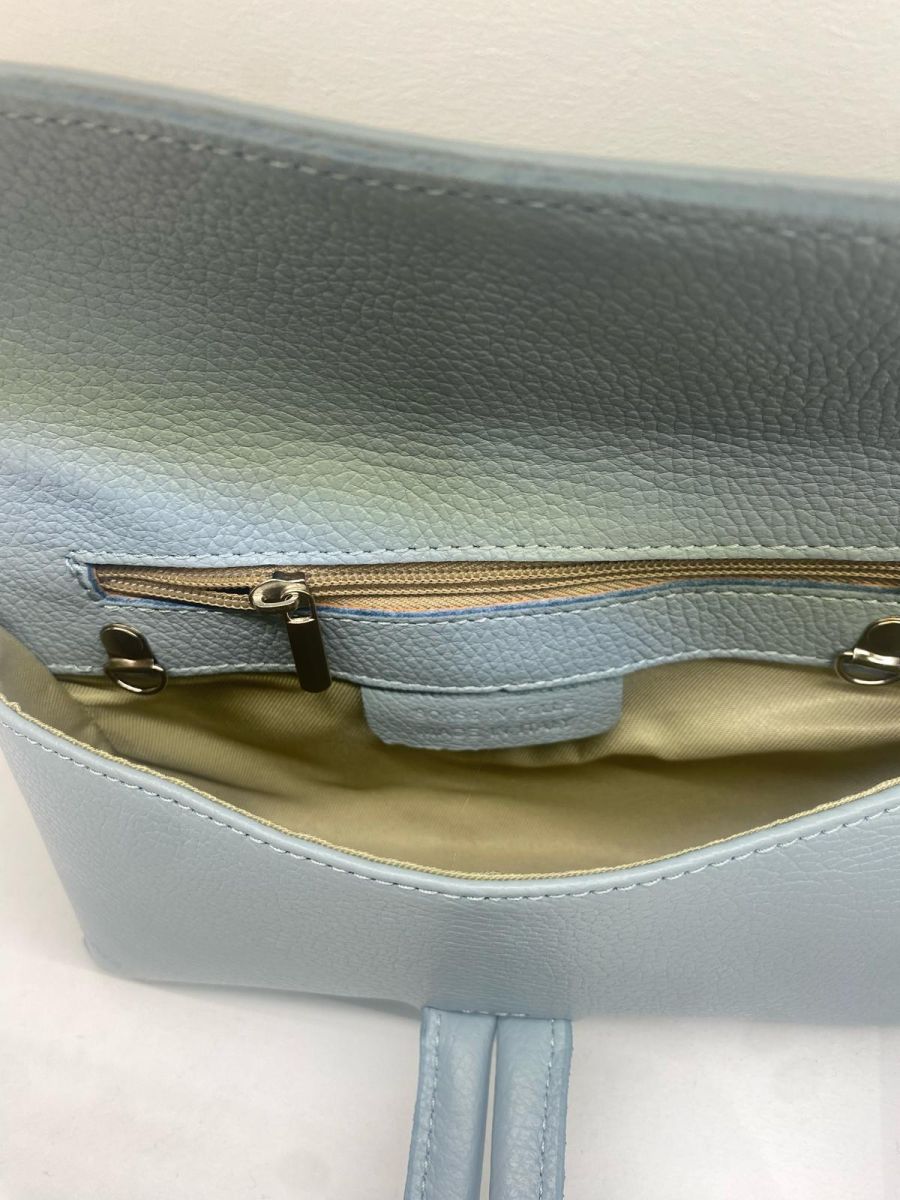 borsa in pelle made in Italy pratica, compatta e spaziosa, con particolare impugnatura da polso. La borsa presenta anche una tracolla da spalla comodamente applicabile per poter fornire due look in una sola borsa.